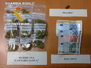 El origen del dinero se explicó poco después, cuando los agentes encontraron bajo el asiento del conductor una bolsa de plástico, que contenía otras 8 bolsas de pequeño tamaño llenas de marihuana.