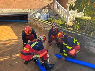 Bomberos de la Comunidad de Madrid trabajan desde primera hora de esta mañana en Camarma de Esteruelas, municipio donde el desbordamiento del arroyo de Camarmilla ha provocado inundaciones en garajes, trasteros y plantas bajas de 52 viviendas unifamiliares.