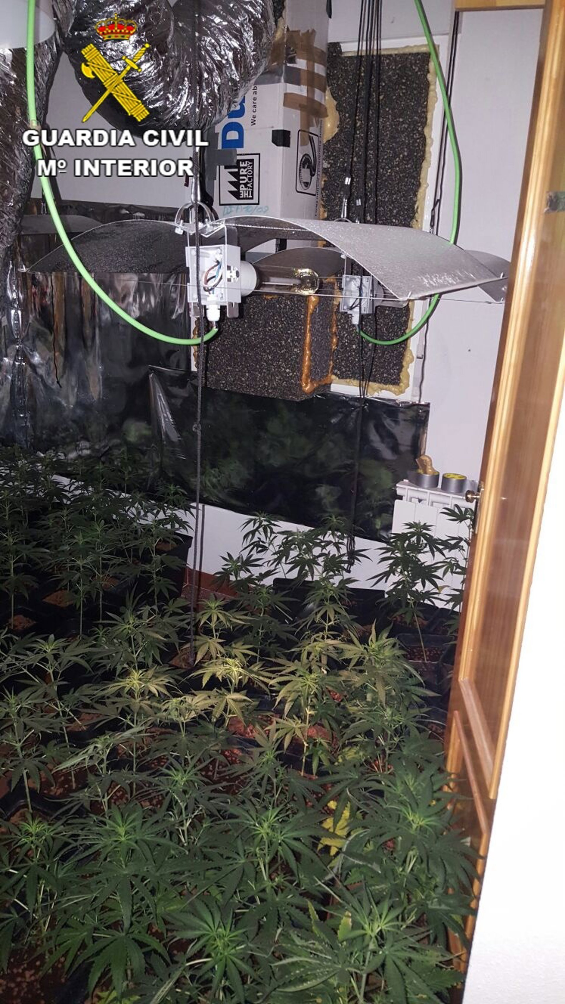 Con la correspondiente autorización de entrada y registro, los guardias civiles descubrieron un vivero compuesto por 642 plantas de marihuana distribuidas por varias habitaciones de la vivienda, así como todos los elementos para su cuidado, lámparas, bombillas, ventiladores, sistema de humidificación, etcétera.