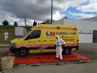 Bomberos de Leganés desinfectan una ambulancia. - AYUNTAMIENTO DE LEGANÉS