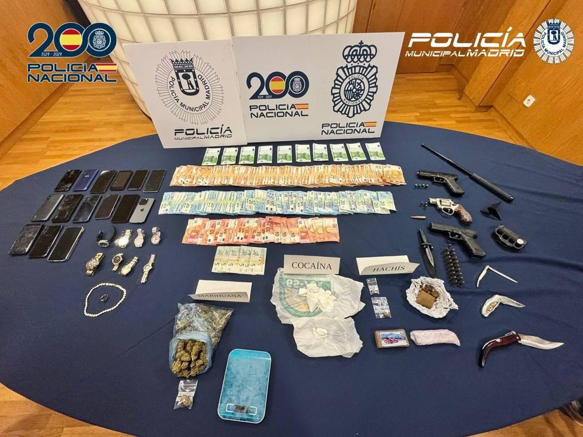 La Policía Municipal de Madrid, en colaboración con la Policía Nacional, ha llevado a cabo una redada en el distrito de Latina que ha culminado con la detención de ocho personas acusadas de gestionar cuatro narcopisos y a las que además se les ha incautado varios tipos de sustancias prohibidas y armas.