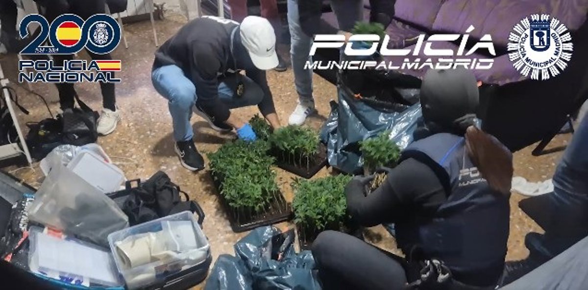 Allí los agentes incautaron unas 800 plantas de marihuana, tres armas cortas de fuego con diferentes tipos de munición, siete armas blancas prohibidas y varios objetos peligrosos, según ha informado la Policía Municipal de Madrid.