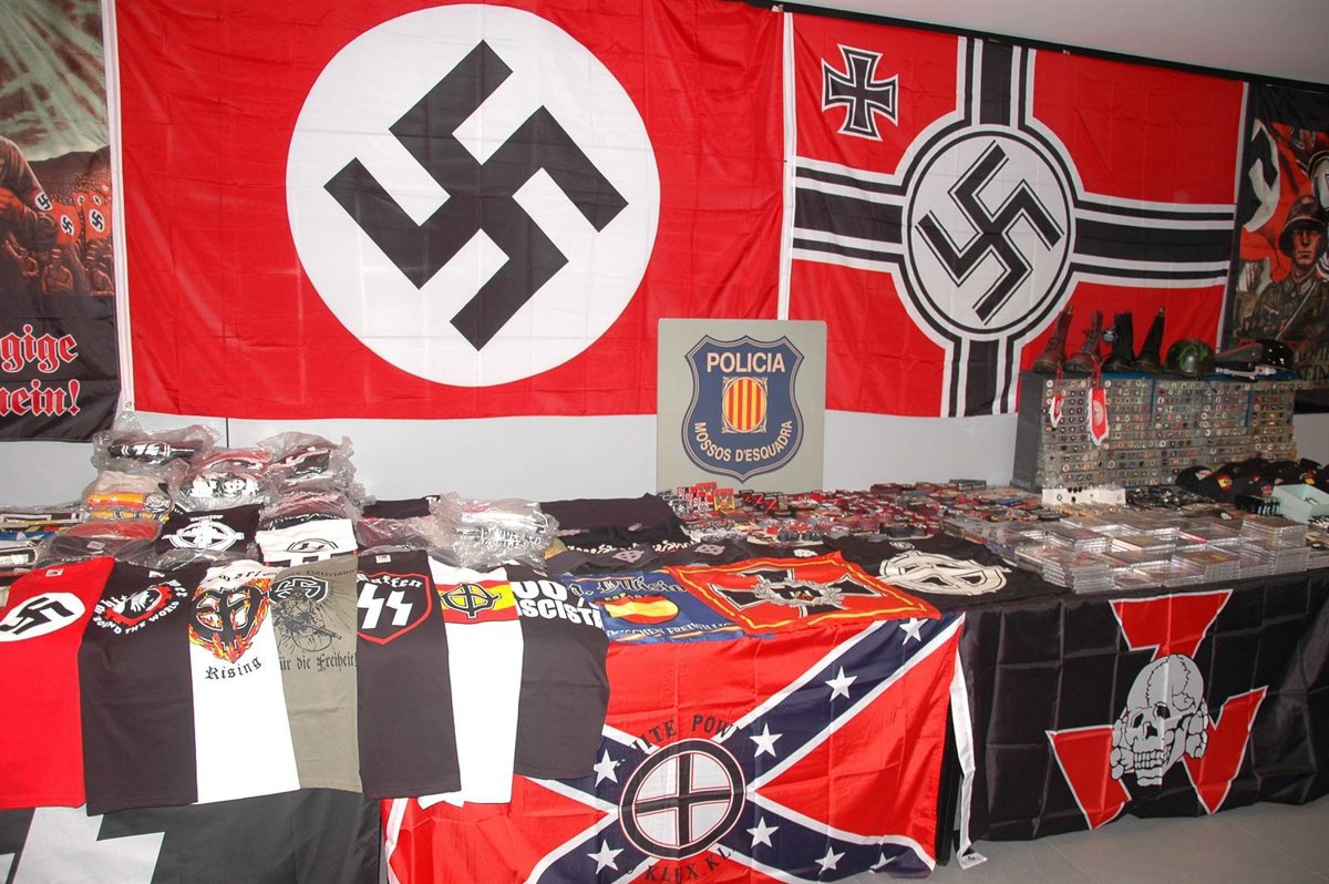 Los Mossos también han decomisado una gran cantidad de material informático, así como un millar de banderas neonazis, un centenar de brazaletes con la esvástica y la cruz celta, 3.000 anillos y más de un millar de piezas de ropa y una veintena de cajas con insignias, chapas y pins con simbología nacionalsocialista, así como CD con la misma ideología.