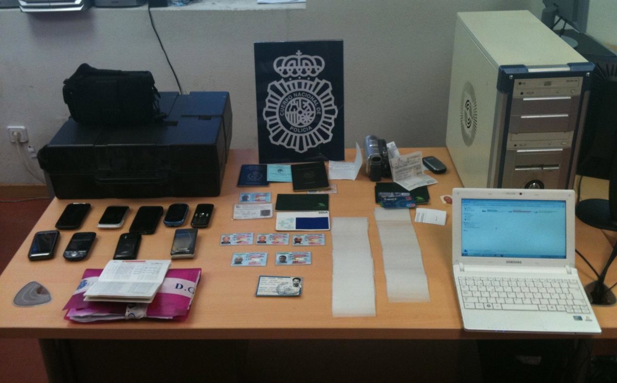 Una vez localizados sus domicilios se procedió al arresto en Móstoles de los implicados en la investigación y se registraron sus viviendas. Allí se intervinieron varias tarjetas de residencia falsas con las fotografías de los integrantes del grupo, así como varios recibos bancarios igualmente falsificados, teléfonos móviles, equipos informáticos y útiles para realizar las imitaciones