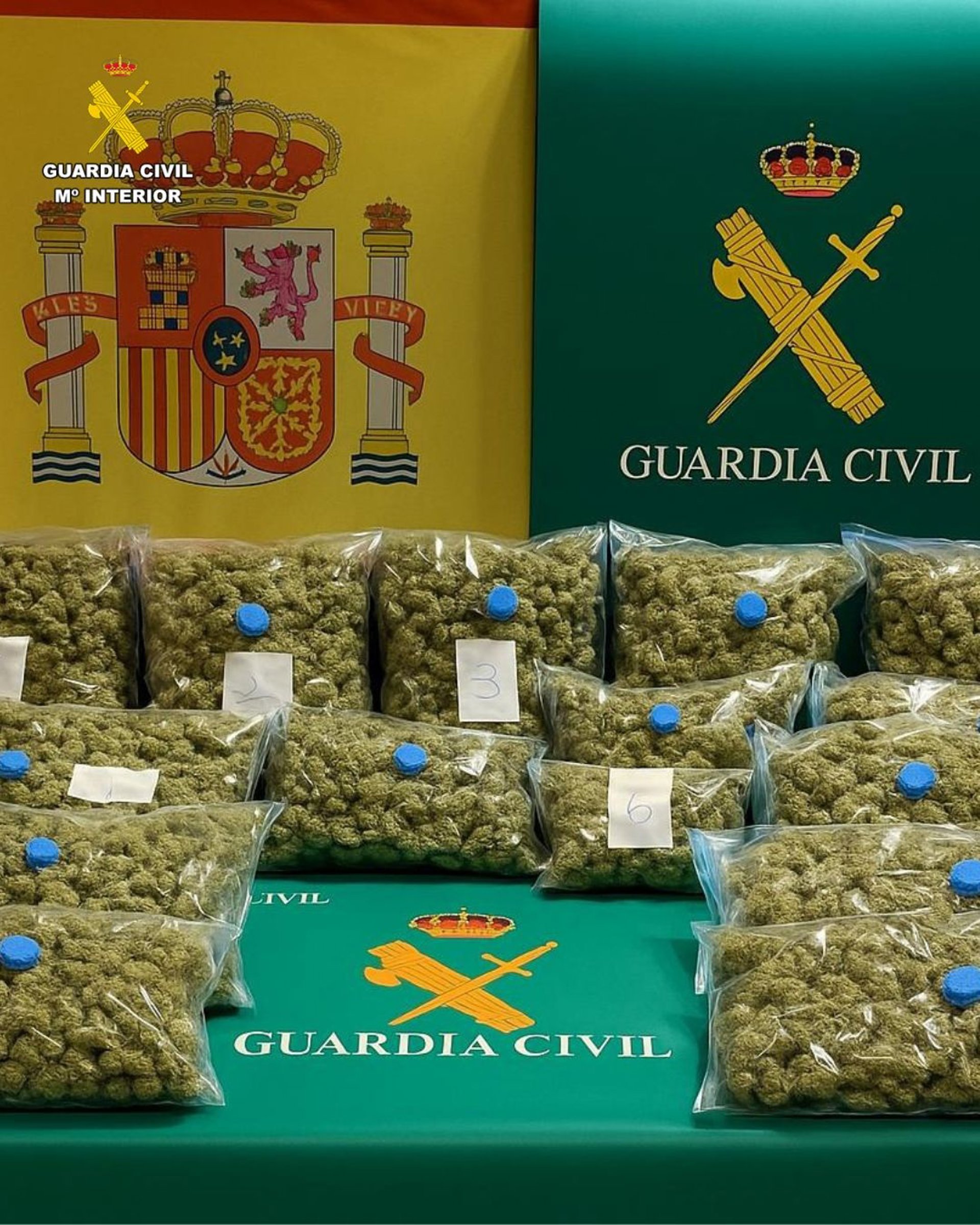 Agentes de la Guardia Civil han detenido a dos personas en las inmediaciones de la localidad de Valdemoro tras encontrar en el interior de su vehículo hasta 15 kilos de cogollos de marihuana en varias bolsas.