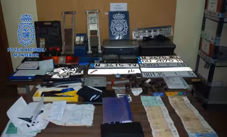 Igualmente intervinieron diversos efectos para la manipulación como planchas con plantillas numéricas para la confección de matrículas, troqueladoras, remachadoras, gran cantidad de placas dobladas así como numerosa documentación de vehículos. Igualmente se intervino casi 9000 euros en efectivo.