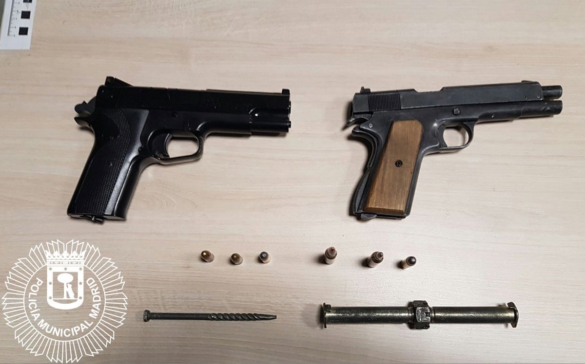 Tras interceptarle, los policías le redujeron y desarmaron, momento en el que apareció una segunda pistola de aire comprimido, que disponía de un cartucho en su interior y elementos que habitualmente son empleados para la modificación del cañón que posibilita el fuego real. También le requisaron seis cartuchos de munición nuevos.