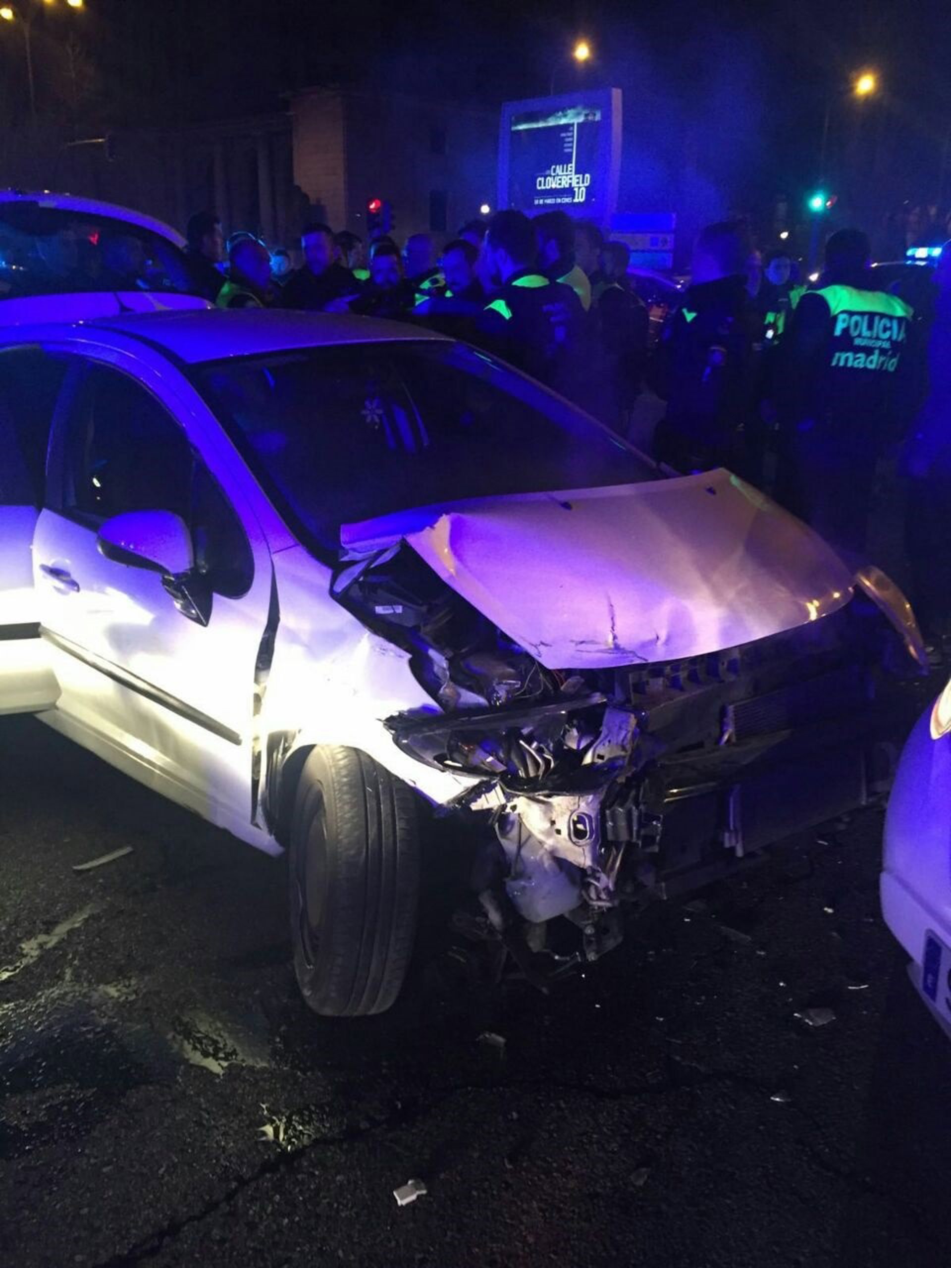 La Policía Municipal de Madrid ha detenido esta madrugada a un conductor que iba ebrio y carecía de carné tras una larga persecución policial de unos 40 minutos, que ha finalizado cuando el hombre ha embestido a un patrulla en la plaza de San Juan de la Cruz, dejando cuatro agentes.