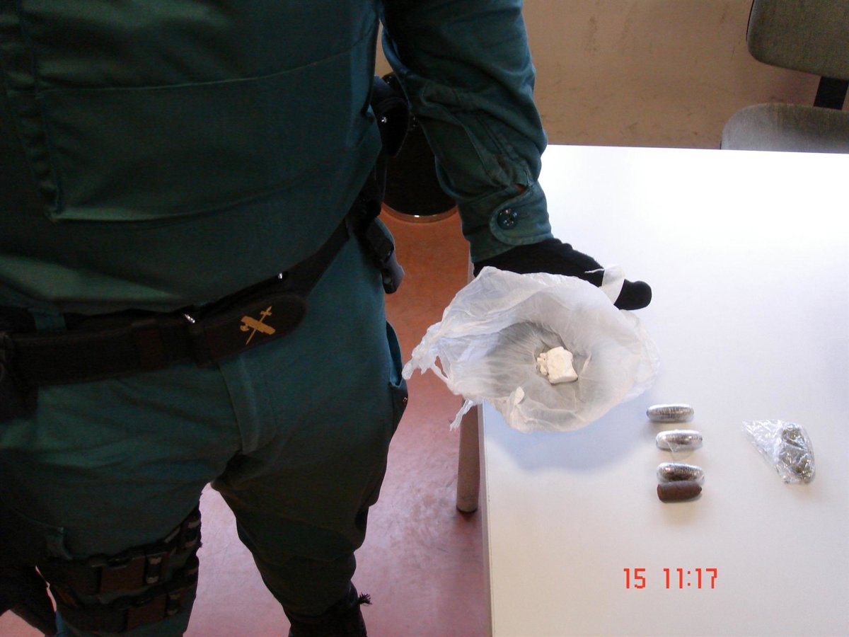 Así, uno de los ocupantes portaba cuatro bellotas de hachís, una bolsita con marihuana y otra bolsa con 9 gramos de cocaína en roca, además de 120 euros en billetes de 20 euros, motivo suficiente para su detención por un delito de tráfico de drogas. El detenido se trata de R.L.G., madrileño de 26 años de edad.