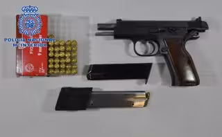 Trataba de huir apresuradamente del lugar, si bien los agentes lograron alcanzarle en el interior del patio de una urbanización, lugar donde pretendía ocultarse. Le intervinieron una pistola con dos cargadores con 12 cartuchos, así como una caja con 31 cartuchos más.