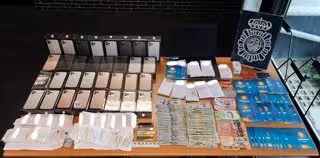 En el interior encontraron numerosas tarjetas y recibos de criptomonedas por valor de 100, 250 o 500 euros cada una, varias tarjetas de crédito falsificadas, 32 teléfonos móviles de alta gama precintados, un ordenador portátil y diferente documentación.