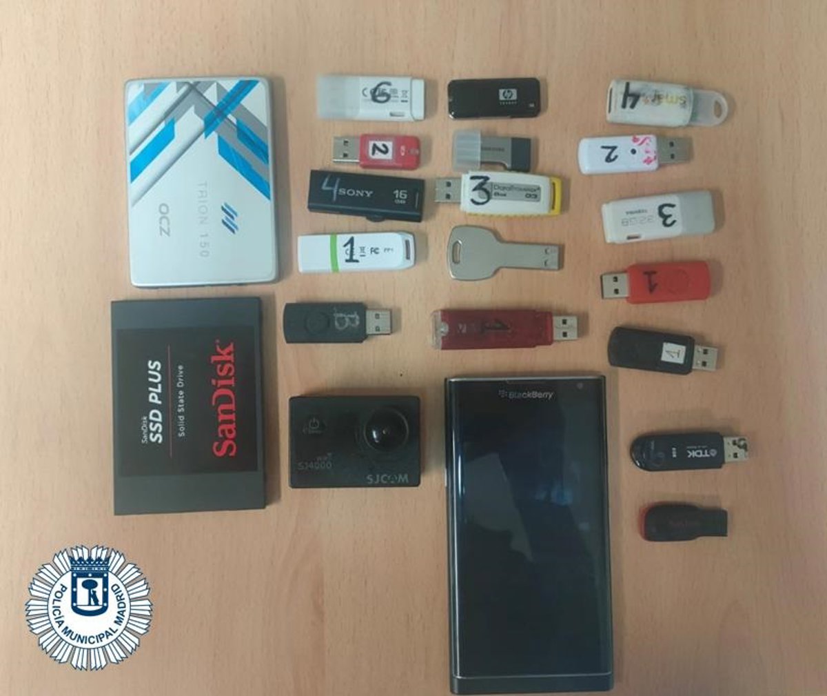 Al pararle, descubrieron el mecanismo y los pendrives con el material delictivo. Por su contenido, podría haber grabado en muchas zonas del centro, en el transporte público y hasta a menores. Le requisaron dos discos duros y 17 memorias USB del interior de la mochila.