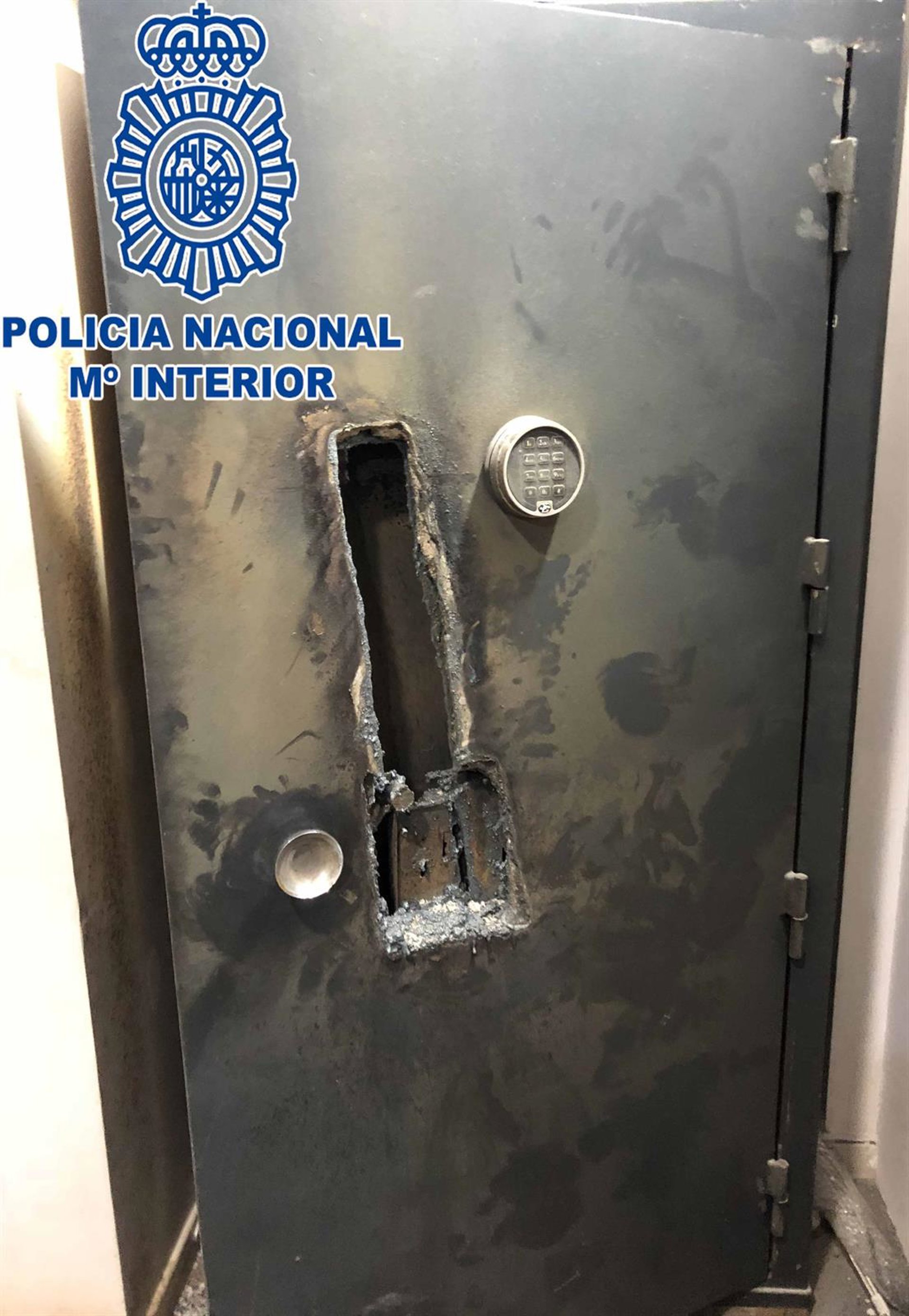Una vez en el establecimiento, los agentes observaron que el bombín de la puerta estaba fracturado y las ventanas tapadas con bolsas de basura negras para ocultarse de posibles testigos. En el interior del local encontraron dos bombonas, un soplete, diversos útiles para la comisión de robos por este procedimiento y la caja fuerte parcialmente cortada y quemada.