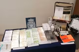 En el registro de su domicilio los agentes encontraron varios paquetes de papel con sellos estampados a los lados, diversos recipientes conteniendo líquido, una bolsa con polvos de talco, numerosas jeringuillas, así como una caja fuerte cerrada.