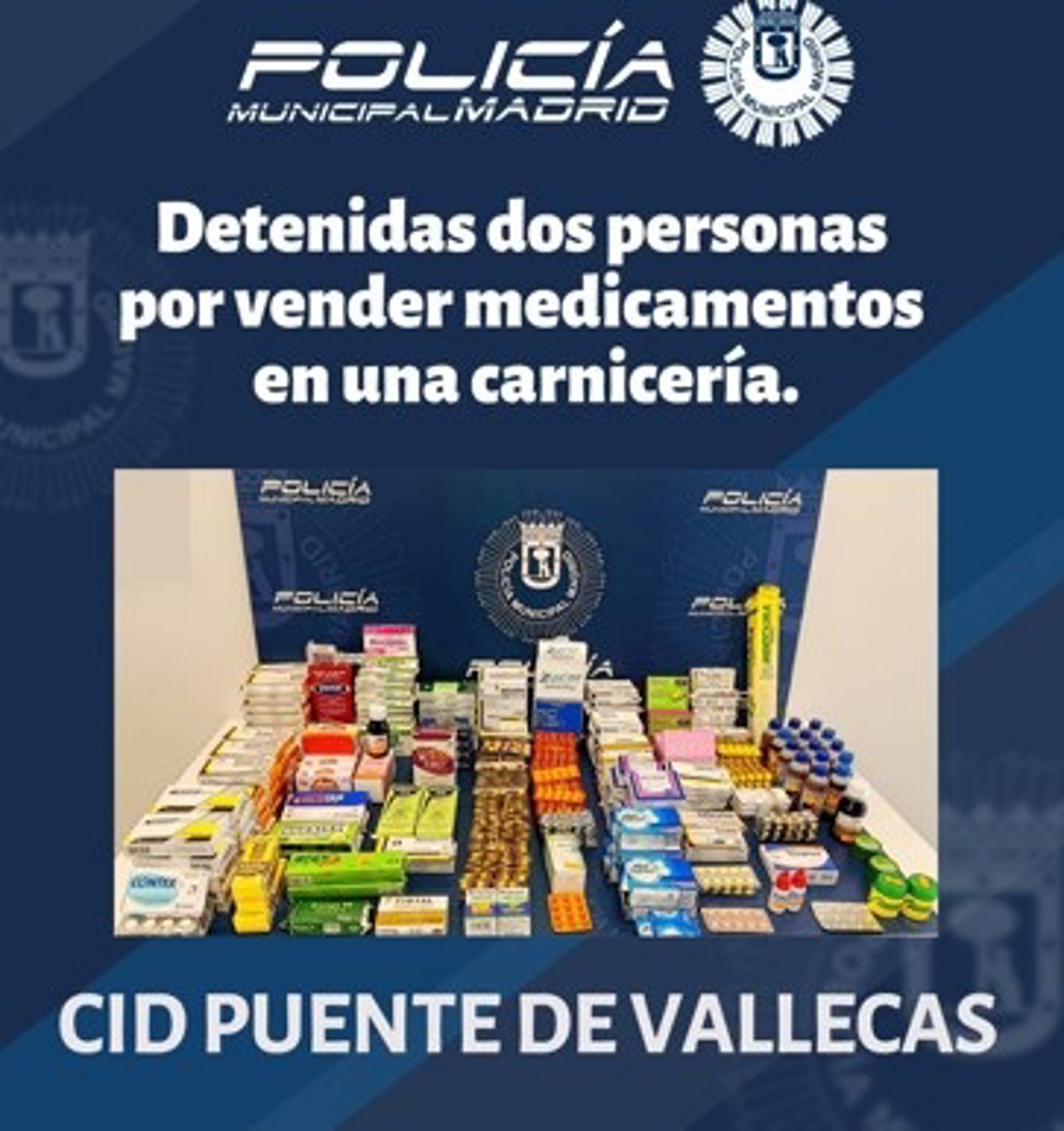 Agentes de la Policía Municipal de Madrid han detenido a dos personas de nacionalidad paraguaya por exponer y vender medicamentos en una carnicería del distrito de Puente de Vallecas, han informado a Europa Press fuentes policiales.