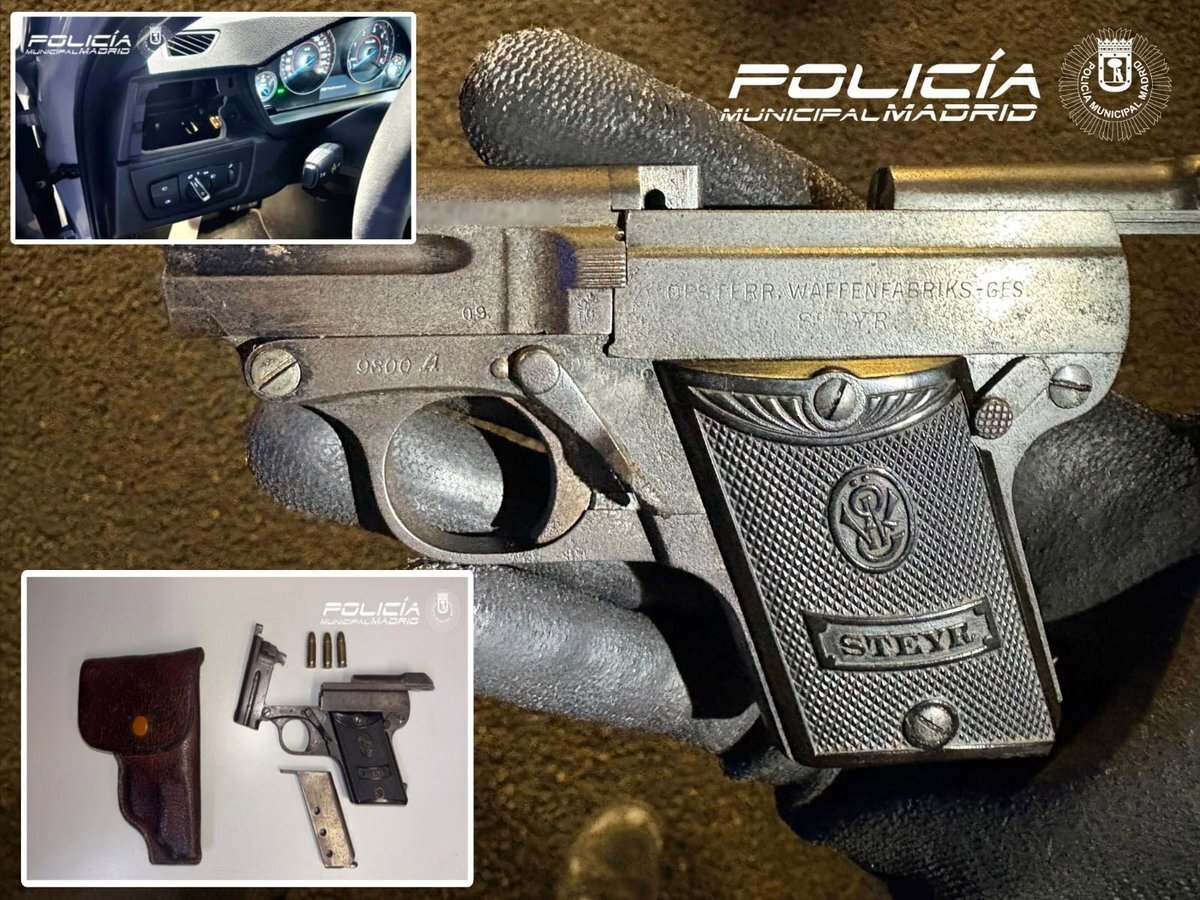 La Policía Municipal de Madrid detuvo a comienzos de enero en el distrito de Moncloa-Aravaca a un varón en posesión de un arma de fuego cargada y sustancias estupefacientes que había escondido en una de las salidas de aire acondicionado de su vehículo.