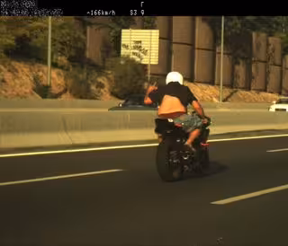 El detenido no llevaba placas de matrícula en la motocicleta, pero ha sido localizado gracias a que fue captado por un radar de la M-30, circulando a 166 km/h, cuando velocidad de la vía está limitada a 90 km/h, y soltando el manillar para hacer un gesto obsceno a la cámara.