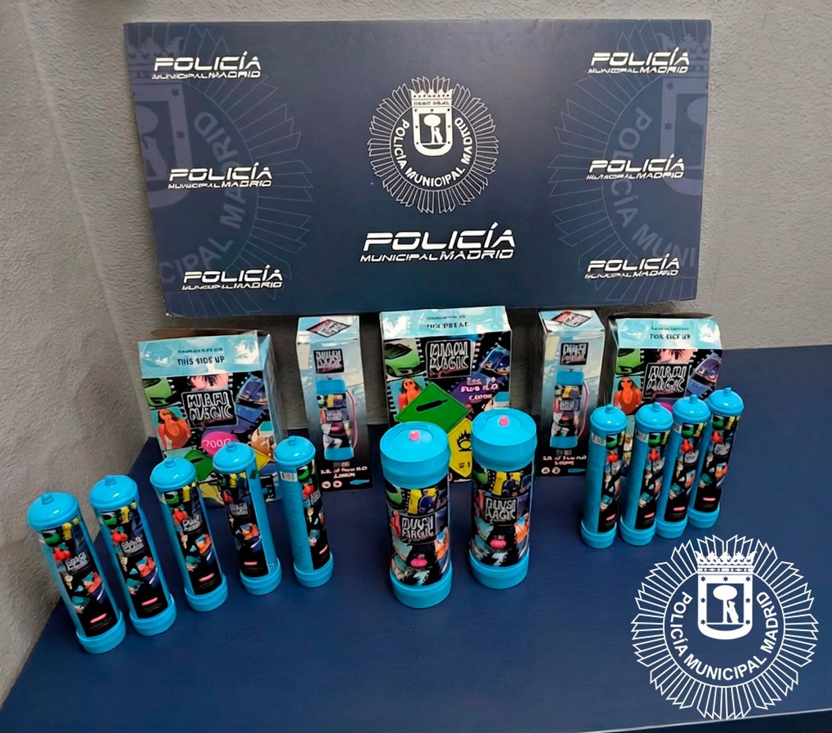 La Policía Municipal de Madrid ha informado de la reciente detención de un hombre acusado de vender óxido nitroso y a quien le incautaron un total de once botellas de este tipo, así como material para su consumo.