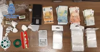 El pasado viernes los agentes realizaron una requisa en bar, que siendo la una de la madrugada se encontraba abierto al público y descubrieron en un macetero un calcetín oculto que contenía varias dosis de al parecer cocaína con el mismo envoltorio que los que encontraron en la cocina del establecimiento junto con una báscula de precisión y material para preparar la droga para la venta.