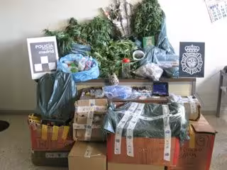 En su interior del inmueble había 50 maceteros preparados para la recogida de la marihuana, 13 cajas con diversos objetos para el consumo de la misma y de otras sustancias, dos frascos con marihuana y varias tarjetas de propaganda del local del distrito Centro. La Policía también encontró, en el patio interior del domicilio, un invernadero dotado de calefacción y ventilación, y un secadero, posiblemente relacionado con la preparación de la planta de la marihuana para su tráfico.