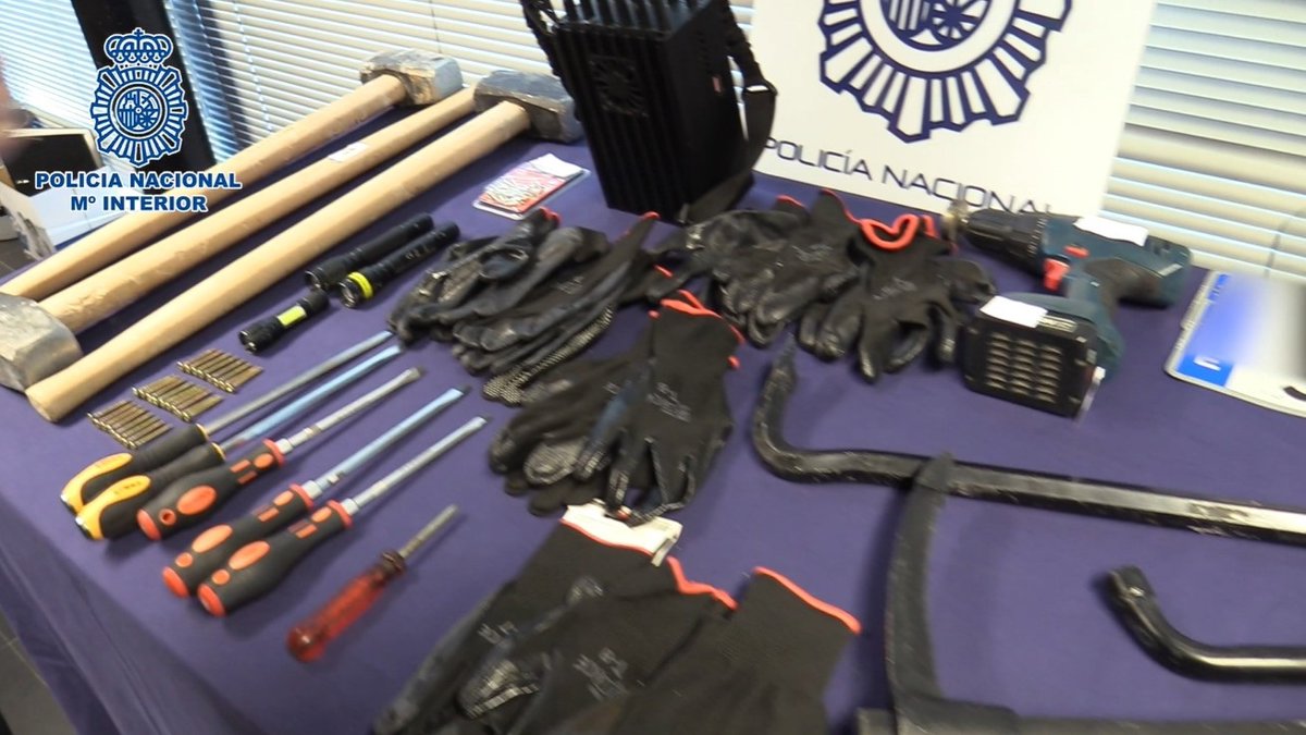 Herramientas intervenidas que la banda podría utilizar para cometer los robos. - POLICÍA NACIONAL