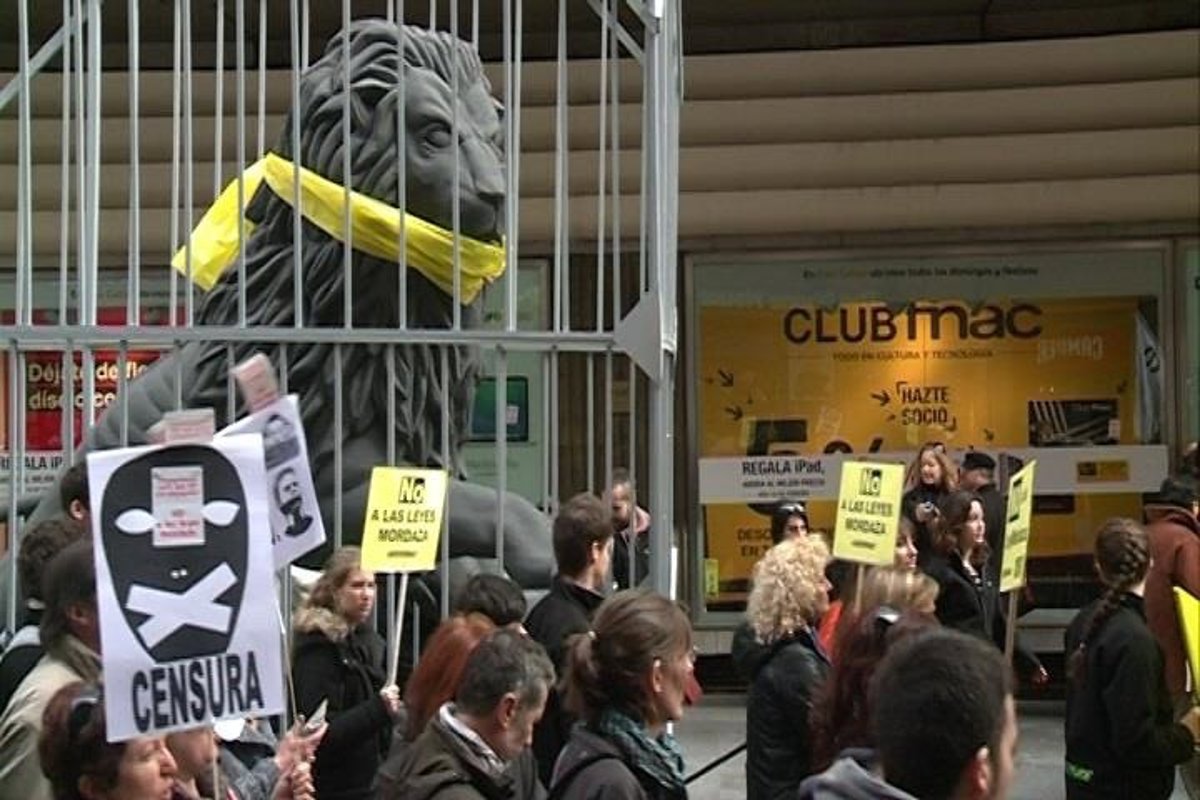 MADRID, 14 Feb. (EUROPA PRESS) - Centenares de personas se han manifestado este sábado en contra de la reforma de la Ley de Seguridad Ciudadana y del Código Penal, comúnmente conocidas como 'Leyes Mordaza'. Los manifestantes han aprovechado la festividad de San Valentín para denominar la protesta como 'Día de los Amordazados', con varios participantes con la boca tapada. En Madrid, los convocantes han sido la plataforma ciudadana 'No Somos Delito' y la organización no gubernamental ambientalista 'Greenpeace', los cuales han realizado para la ocasión una carroza con una réplica de uno de los leones situados en el Congreso de los Diputados amordazado y enjaulado. En declaraciones a Europa Press Televisión, la portavoz de 'No Somos Delito', Mónica Hidalgo, ha afirmado que la aprobación de este tipo de leyes "supone coartar las libertades y derechos de todos los ciudadanos del país" y ha acusado al Gobierno actual de "hacer oídos sordos a cualquier manifestación o reivindicación". Además, Hidalgo ha reconocido que 'No Somos Delito' tiene el compromiso de partidos con representación parlamentaria de "revocar en los primeros cien días ambas leyes si llegan a gobernar en la próxima legislatura". Entre los asistentes a la manifestación ha estado la representante de 'SOS Racismo Madrid', Irene Ruano, quien ha explicado que estas dos leyes supone crear tres ataques directos a la comunidad inmigrante de España. El primero, "convertir el 'top manta' en delito, lo que afecta luego a la posible regularización". El segundo, "criminalización de la solidaridad de apoyo a inmigrantes en situación irregular" y finalmente "legalizar las devoluciones en caliente, algo que van en contra la legalidad internacional y vulnera los derechos humanos", ha finalizado. Lorena, una de las asistentes a la manifestación que ha partido a las 12.30 horas desde la Plaza de España de Madrid, ha querido llamar la atención en el hecho de que, según ella, "no se puede quitar libertades a la gente, que no te puedas expresar y no te puedas manifestar no es normal en un país que se pretende democrático", ha concluido. La protesta tras subir por la Gran Vía ha pasado por la Plaza de Callao hasta finalizar en torno a las 14.30 horas en la Puerta del Sol, donde se han reunido el casi medio millar de personas participantes para leer un manifiesto.