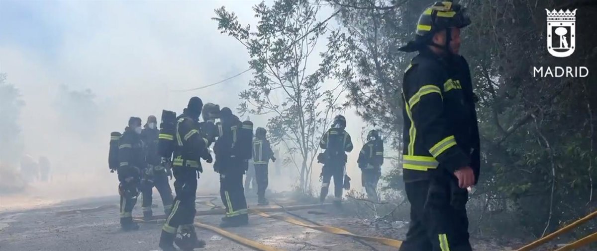 A lo largo de las labores de extinción se han llegado a activar 20 dotaciones de Bomberos del Ayuntamiento de la capital, apoyadas por un helicóptero bombardero y una dotación terrestre de la Comunidad de Madrid, según informa Emergencias Madrid.