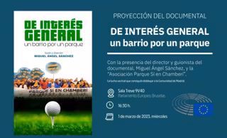 El documental sobre la lucha del barrio madrileño de Chamberí para transformar un campo de golf construido durante la etapa de Esperanza Aguirre al frente de la Comunidad en un parque diseñado por los propios vecinos y vecinas se proyectará este miércoles, día 1, en el Parlamento Europeo.
