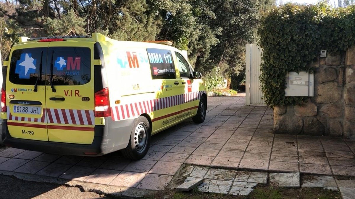 Una ambulancia del SUMMA 112 a las puertas del chalet de Villaviciosa de Odón en el que un hombre ha resultado herido de gravedad tras ser apuñalado. - EMERGENCIAS 112 COMUNIDAD DE MADRID