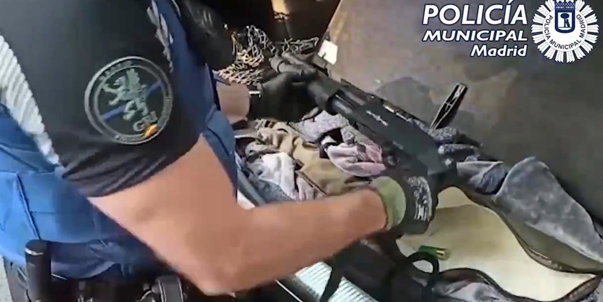 La Policía Municipal de Madrid ha detenido en plena Gran Vía a dos hombres de 33 y 34 años que conducían un automóvil por tenencia ilícita de armas tras descubrir que llevaban oculta una escopeta recortada envuelta en una sudadera dentro del habitáculo del maletero para la rueda de repuesto.