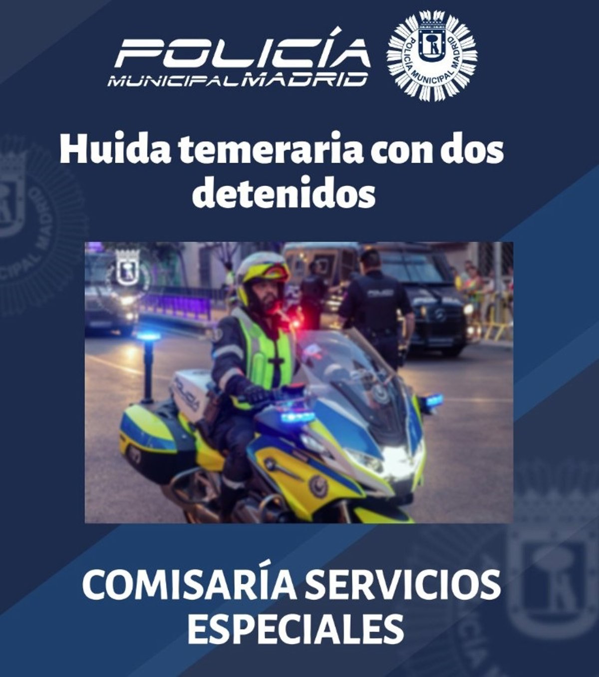 La intervención policial evitó que la persecución causara daños personales de mayor gravedad y puso fin a una huida considerada de alto riesgo para la seguridad vial en Madrid.