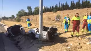 El aviso ha llegado a la central de Emergencias a las 09.45 horas, alertando de que un turismo pequeño había colisionado contra una farola en el kilómetro 15 de la mencionada vía, poco antes de la salida del Hospital de Fuenlabrada, y podía haber heridos y atrapados.
