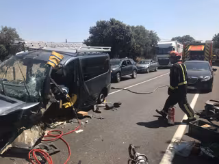 El conductor de la furgoneta, de 56 años, ha sido rescatado por bomberos al quedar atrapado en el interior. Tras el impacto, ha sufrido un traumatismo torácico, una fractura en la clavícula izquierda y una contusión pulmonar.