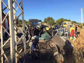 Un total de cuatro dotaciones de Bomberos, dos ambulancias y dos UVI móvil se han desplazado hasta el lugar del accidente a las 7.25 horas. Dos de los tres ocupantes permanecían aún en el vehículo, y han tenido que ser excarceladas por los bomberos.