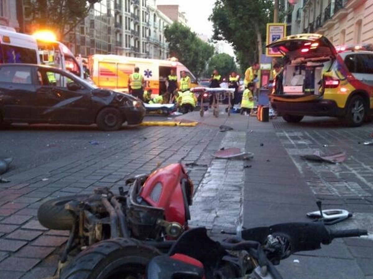 Según han explicado hoy a Europa Press fuentes de Emergencias Madrid tras conocer el atestado policial, una moto tipo scooter colisionó contra un coche Seat Ibiza negro que circulaba por la calle Jorge Juan.