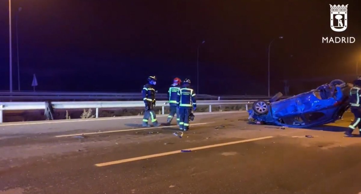 Pasadas las cuatro de la madrugada, un vehículo ha perdido el control en el carril central y ha volcado, dejando herido con un traumatismo craneoencefálico al conductor, de 21 años, que ha sido estabilizado por Samur y trasladado con pronóstico reservado al hospital Gregorio Marañón.