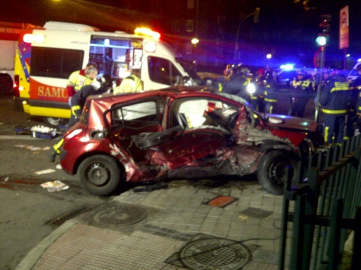 Uno de los turismos ha colisionado frontalmente contra el lateral del otro vehículo correspondiente al del copiloto a las 3.00 hora peninsular española. En el primero de los coches se encontraban cuatro jóvenes de entre 20 y 25 años. En el segundo, dos varones de 30 y 31 años. El accidente ha tenido lugar en la confluencia de las calles de Sirio y Camino de Vinateros.