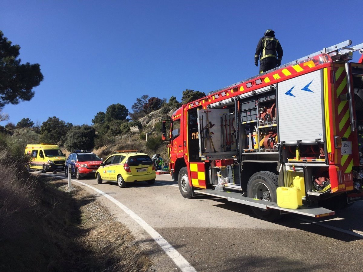 MADRID, 19 Feb. (EUROPA PRESS) - Dos personas han resultado heridas, una grave y otra leve, en un aparatoso accidente múltiple ocurrido este mediodía en Robledo de Chavela en el que se han visto implicadas tres motocicletas, ardiendo dos de ellas como consecuencia del fuerte impacto, ha informado a Europa Press un portavoz de Emergencias 112 Comunidad. La primera llamada al servicio de Emergencias del 112 se ha recibido a las 11.49 horas, alertando de que se había producido un accidente múltiple en la carretera M-521 a la altura del kilómetro 28, situado en el término municipal de Robledo de Chavela. Varias motocicletas se han visto implicadas en el siniestro, derivando el 112 el aviso a los bomberos de la Comunidad de Madrid dado que dos de ellas han acabado ardiendo. El accidente se habría producido al salirse una moto de su carril e impactar después con otro grupo de motoristas. La Guardia Civil ha cortado la circulación por la zona durante la asistencia a los heridos. A su llegada, los efectivos del SUMMA 112 han atendido a un varón de 26 años, que presentaba quemaduras de 2º y 3ª en los miembros inferiores. Además, presentaba una fractura abierta de la tibia, así como del cúbito y radio. El joven también tenía una fractura cerrada del fémur, así como un traumatismo craneoencefálico leve y problemas respiratorios, siendo intubado en el lugar. Se le ha trasladado en helicóptero hasta el Hospital de La Paz, donde ha ingresado en estado grave. También se ha atendido a otro varón de 30 años, que presentaba fractura cerrada de la muñeca izquierda y cúbito y radio. Estaba consciente, pero se quejaba de dolor abdominal, siendo trasladado al Hospital Puerta de Hierro de Majadahonda con pronóstico reservado. Os dejamos imágenes del accidente de hoy en la M-521 km 28 en el que se han visto implicados varios motoristas. #SUMMA112 #BomberosCM pic.twitter.com/m4Z0kZBb2P