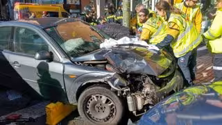 MADRID, 5 Feb. (EUROPA PRESS) - Dos peatones y un conductor han resultado heridos, aunque no de gravedad, en un aparatoso accidente de tráfico ocurrido la mañana de este domingo a la altura del número 596 de la calle Alcalá de Madrid, en el barrio de Canillejas, ha informado a Europa Press una portavoz de Emergencias de la capital. En ese punto, un vehículo, por causas que ahora se investigan, ha intentado esquivar una furgoneta y ha acabado estrellándose contra un poste que había en la acera de la calle. Pero en ese recorrido ha arrollado dos personas que estaban esperando en el paso de peatones. Se trata de un varón de 82 años, que a la llegada de los sanitarios del Samur-Protección Civil presentaba una herida en la cabeza; y una mujer de 59 años, que ha sufrido policontusiones. Ella ha quedado atrapada entre el coche, el poste y una bicicleta que estaba aparcada allí, por lo que ha sido necesario que los Bomberos del Ayuntamiento acudieran a liberarla. Los sanitarios también han atendido al conductor de la furgoneta, un hombre de 30 años, que presentaba un traumatismo lumbar. Los tres han sido trasladados al Hospital Ramón y Cajal de Madrid. Están leves, salvo la mujer, que tiene un pronóstico moderado. Por otra parte, la Policía Municipal de Madrid busca ahora al conductor del vehículo, que se ha marchado del lugar de los hechos. También está hablando con testigos del lugar para conocer las circunstancias del siniestro y conocer si se saltó un semáforo antes de esquivar a la furgoneta, han indicado a Europa Press fuentes presenciales.