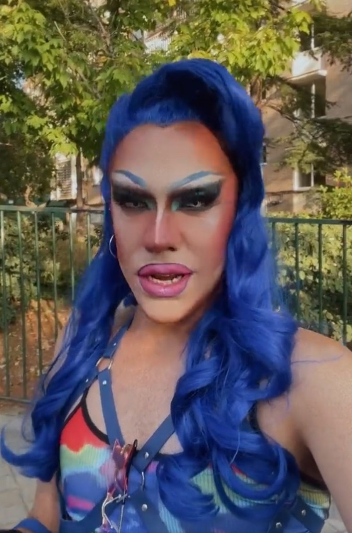Con abundante maquillaje con colores azules, peluca azul y una vestimenta especial para la ocasión, la 'drag queen' Onyx ha dado con su presencia la nota de color durante estas primeras horas de la cita electoral.