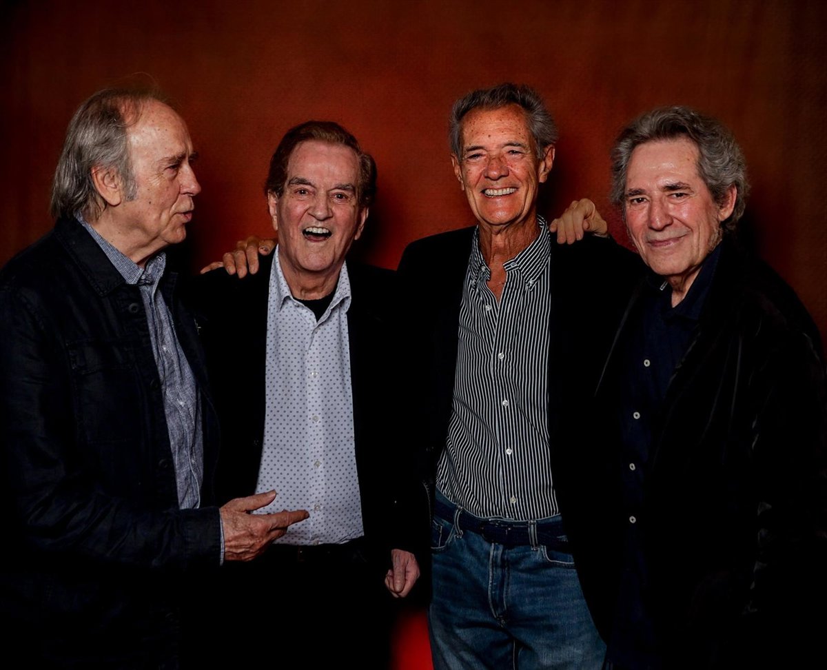 Archivo - El cantante Joan Manuel Serrat; los integrantes del Dúo Dinámico, Manuel de la Calva y Ramón Arcusa, y el cantante Miguel Ríos posan para Europa Press, a 9 de mayo de 2024, en Madrid (España). - Ricardo Rubio - Europa Press - Archivo