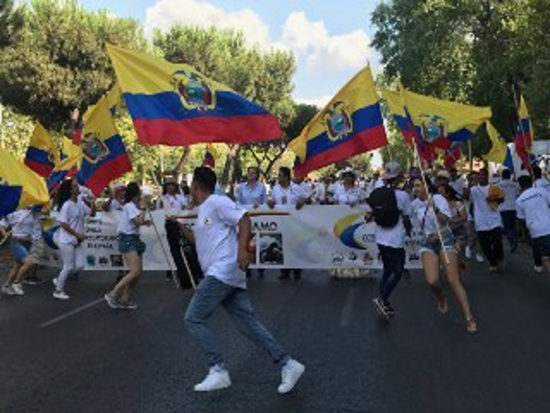 En el acto, que comenzó con un pasacalle que recorrió la calle Hermanos García Noblejas y terminó con un baile, estuvieron representadas las provincias de Ecuador y muchos de los presentes iban ataviados con trajes típicos del país latinoamericano.