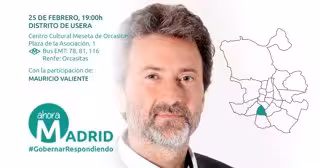 Así, hoy jueves a las 19 horas en el Centro Cultural Meseta de Orcasitas tendrá lugar el primer encuentro ciudadano con el tercer teniente de alcalde del Ayuntamiento, Mauricio Valiente. En el acto el concejal no sólo rendirá cuentas de la acción del gobierno y de su actividad como responsable del funcionamiento del Pleno y las Comisiones, sino que responderá a las preguntas directas por parte de la ciudadanía, que Ahora Madrid quiere que sea lo más relevante de estos encuentros.