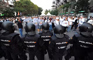 "Fue un acontecimiento de mucho riesgo porque todos sabemos que hay unos aficionados son radicales y tenemos el ejemplo de lo que ha pasado en otros lugares. Por tanto, se hizo un esfuerzo en poner más efectivos y el resultado es que ha habido 13 detenidos y 12 heridos, entre ellos dos policía nacionales y uno municipal. Y espero y deseo que tengan una pronta recuperación", ha añadido.