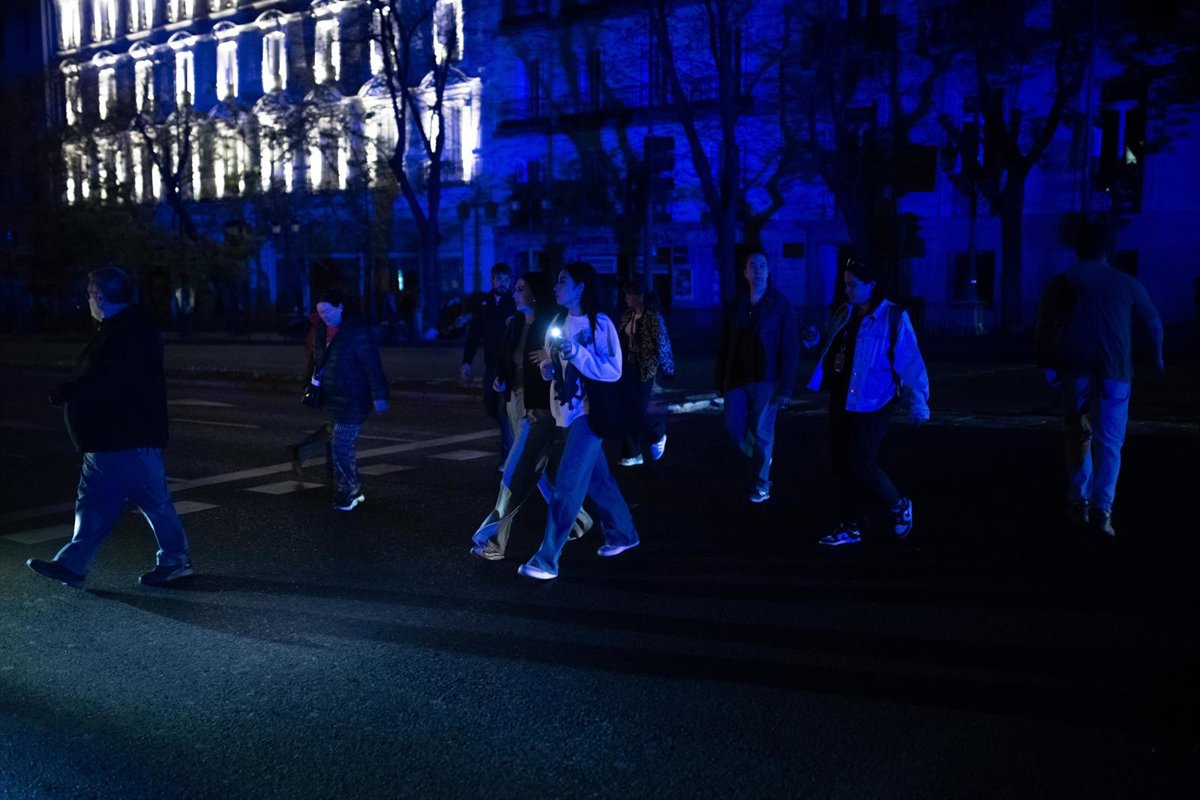 Varias personas cruzan por un paso de peatones tras el apagón eléctrico en Madrid, España, el 28 de abril de 2025. - Alejandro Martínez Vélez/Europ / Europa Press