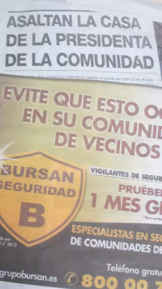 A continuación, la empresa de seguridad vende sus servicios con el lema 'Evite que esto ocurra en su comunidad de vecinos' e invita a los lectores a que prueben sus servicios de 24 horas durante un mes de forma gratuita porque son "especialistas en seguridad de comunidades de vecinos".