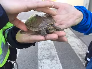 Este galápago ha sido recogido por trabajadores de Madrid Calle 30 y agentes de la Policía Municipal en la calzada 2 del ramal de entrada desde la A-3 a la M-30, a la altura de la Plaza del Conde de Casal. Tras su reconocimiento, el animal ha sido trasladado al Centro de Protección Animal.