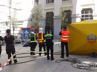 Por su parte, efectivos del Samur y de Bomberos han instalado una línea de descontaminación para que las personas del interior del edificio y los miembros de los TEDAX que intervienen en la operación puedan ser descontaminados y salir del edificio.