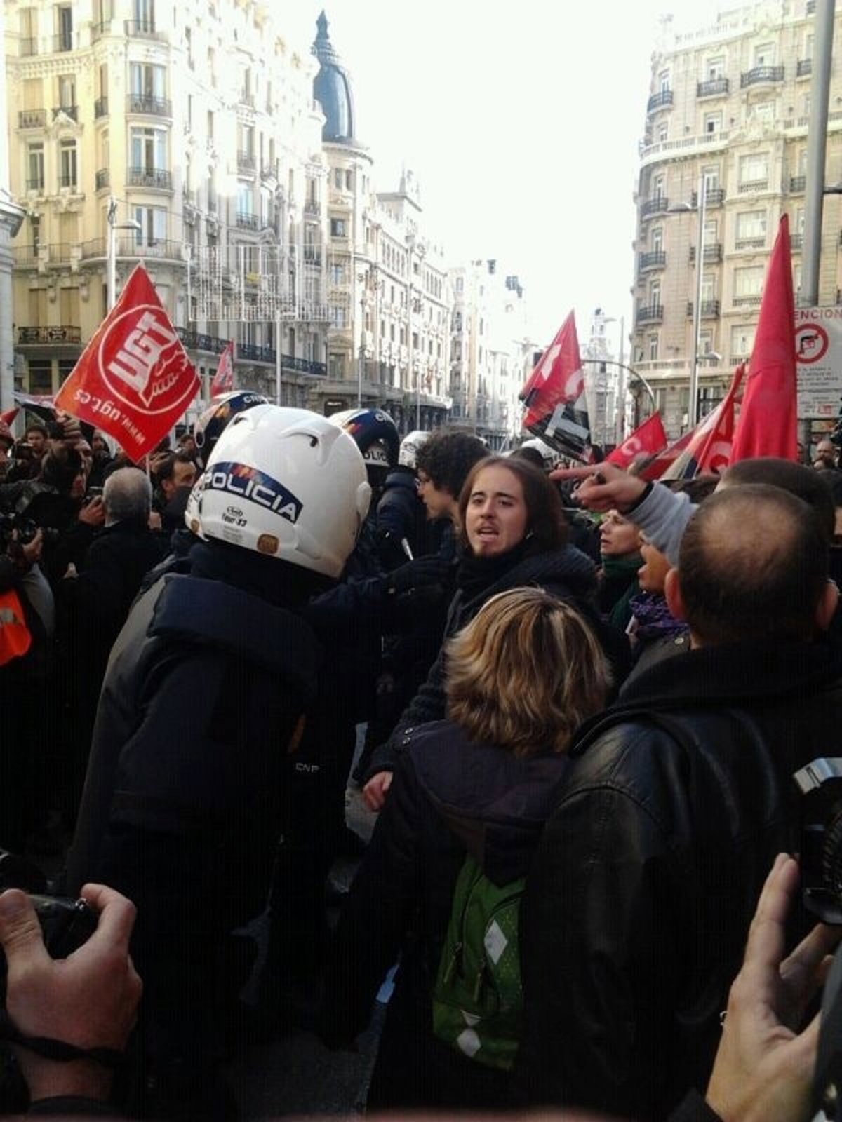 Según las mismas fuentes, la marcha no convocada que ha comenzado esta mañana en Moncloa y que ha transcurrido por Princesa, Plaza de España y Gran Vía, ha sido "tranquila" y tan solo ha habido una pequeña carga con nueve heridos, todos de carácter leve.