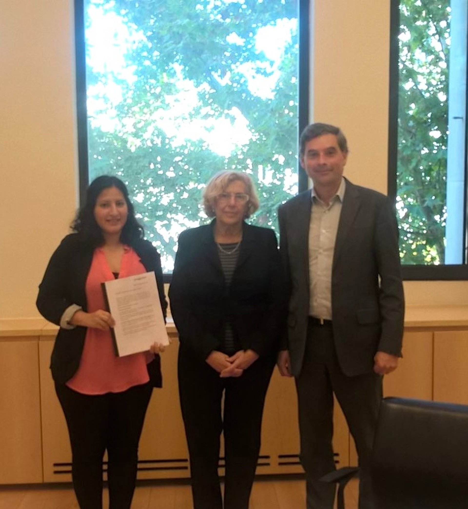 La ONG Enraizados entregó este miércoles más 15.000 firmas a la alcaldesa de Madrid, Manuela Carmena, para pedirle que "respete las tradiciones del pueblo español y mantenga los belenes donde han estado tradicionalmente".